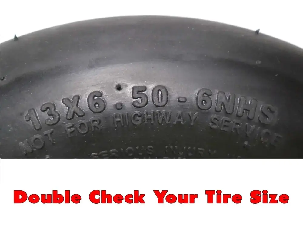 Please double check tire size to verify fitment prior to purchase. Thanks!(2) 13×6.50-6 Smooth 4 Ply Tires Scag. Gravely. Hustler. Toro. Ferris