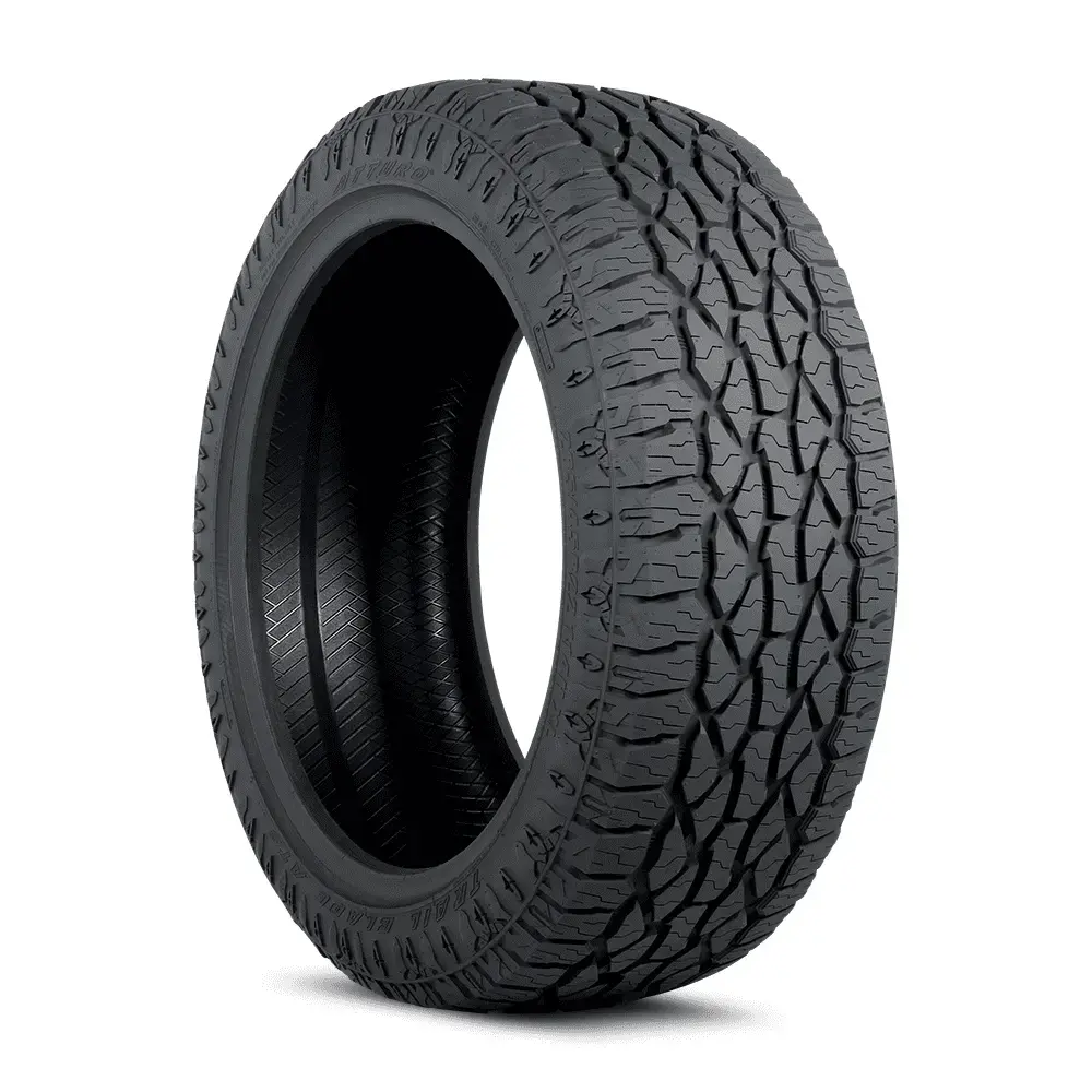 The Trail Blade ATS is the second tire in Atturo’s new Trail Blade Sport series. The Trail Blade ATS is Atturo’s new All-Terrain tire focused on aftermarket applications and features a sidewall pattern inspired by Quartermaster Knives that’s easily the most aggressive available for any All-Terrain type tire. Large tread blocks. deep sipes. long center rib. and wide channels provide a stylishly aggressive and functional tire that is ready for action on asphalt or off road!Atturo Trailblade Ats 265/65R18 116T Tire