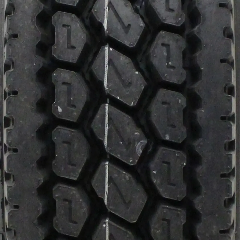 - Deep tread with stone ejectors boosts tread life by protecting the casing from damage