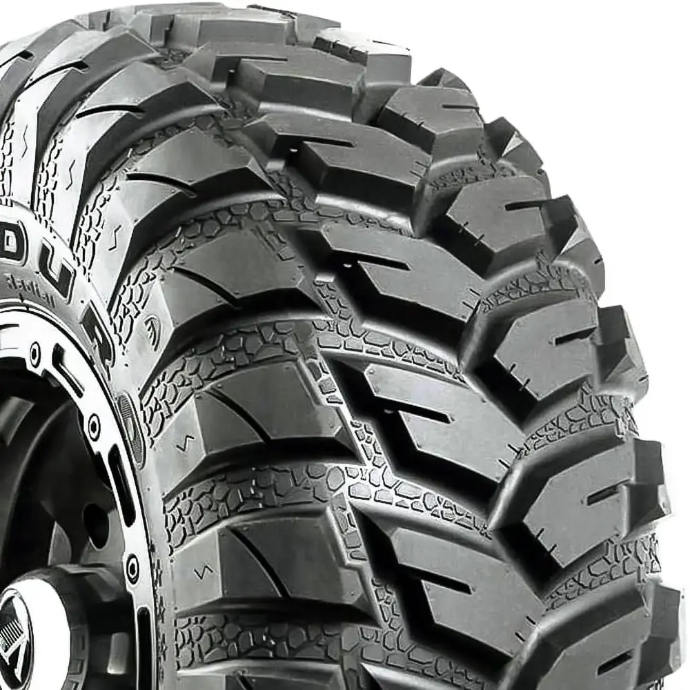 This model utilizes its durable compound to improve the tire’s overall tread life. These materials are able to slow down the treadwear rate. preventing premature wear from shortening the tire’s tread life. It also offers damage resistance. avoiding cuts and punctures while performing in harsh off-road applications. The model’s self-cleaning tread effectively resists stone retention as it ejects rocks from the footprint before they can harm the tire’s tread and casing. The tread is able to prevent irregular wear as well. greatly enhancing the model’s usability and service life.
