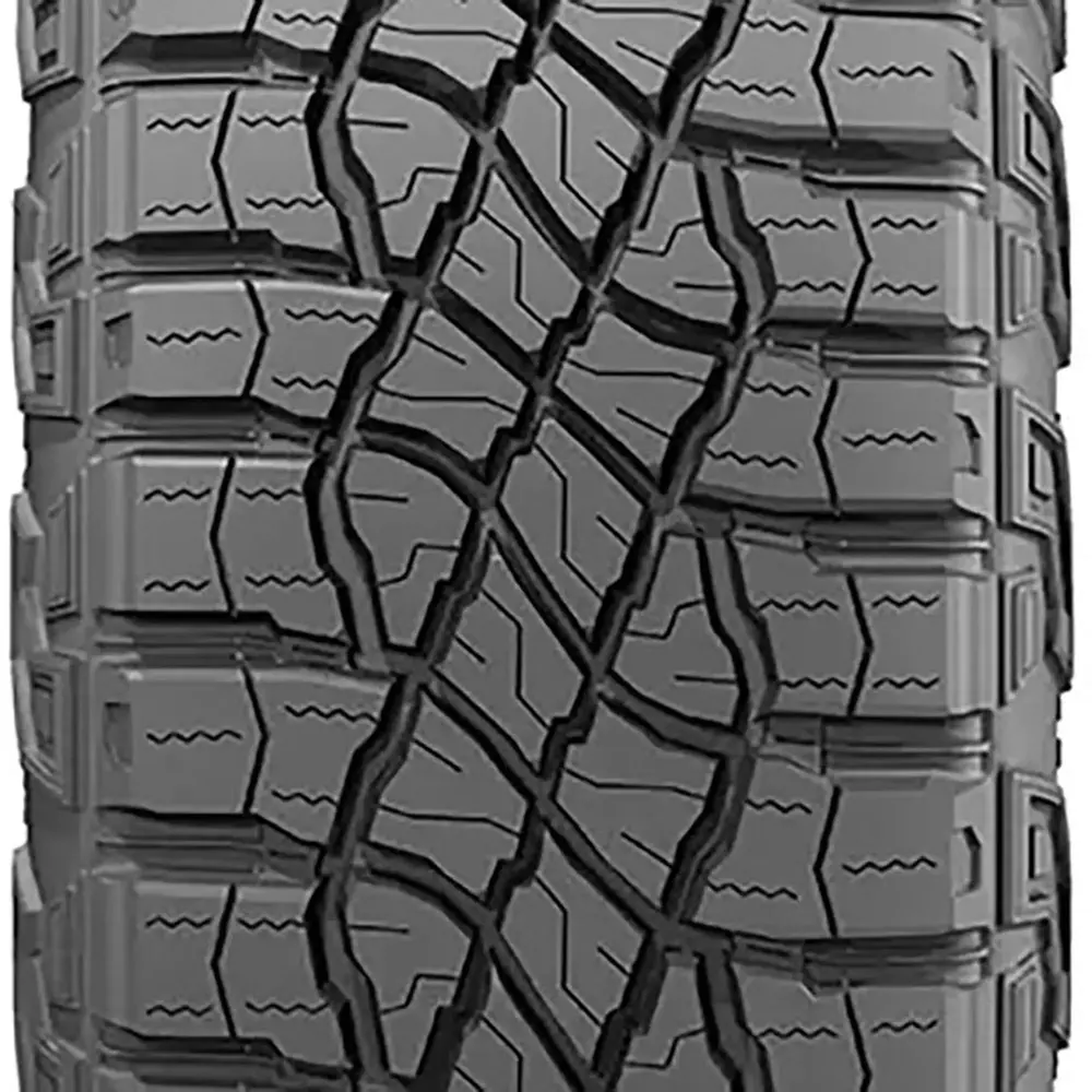 The Goodyear Wrangler Territory MT is a mud terrain tire that’s used as Original Equipment on select trucks and SUVs. An open tread design promotes self-cleaning of mud. dirt. rocks. stones. and other debris for consistent traction and performance on- and off-road. and the Wrangler Territory MT’s sequenced pitch pattern reduces road noises and vibrations to create a quiet. comfortable ride for drivers and passengers.