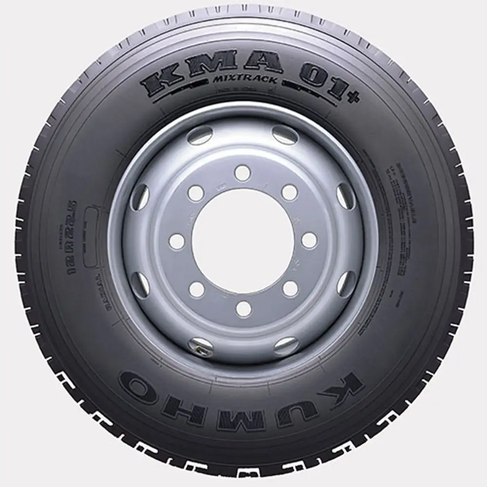 Purpose built for use on both on and off-road surfaces. the Kumho KMA01 tire is designed for semi-trucks and other commercial vehicles and provides exceptional overall wear characteristics as well as enhanced cut and chip resistance. Ideal for use on the trailer and steer axles. the KMA01 features a sturdy four-rib design that offers superb handling and minimal rolling resistance for better fuel efficiency. Additionally. the closed shoulder design and block pattern of the KMA01 improves durability for longer mileage.