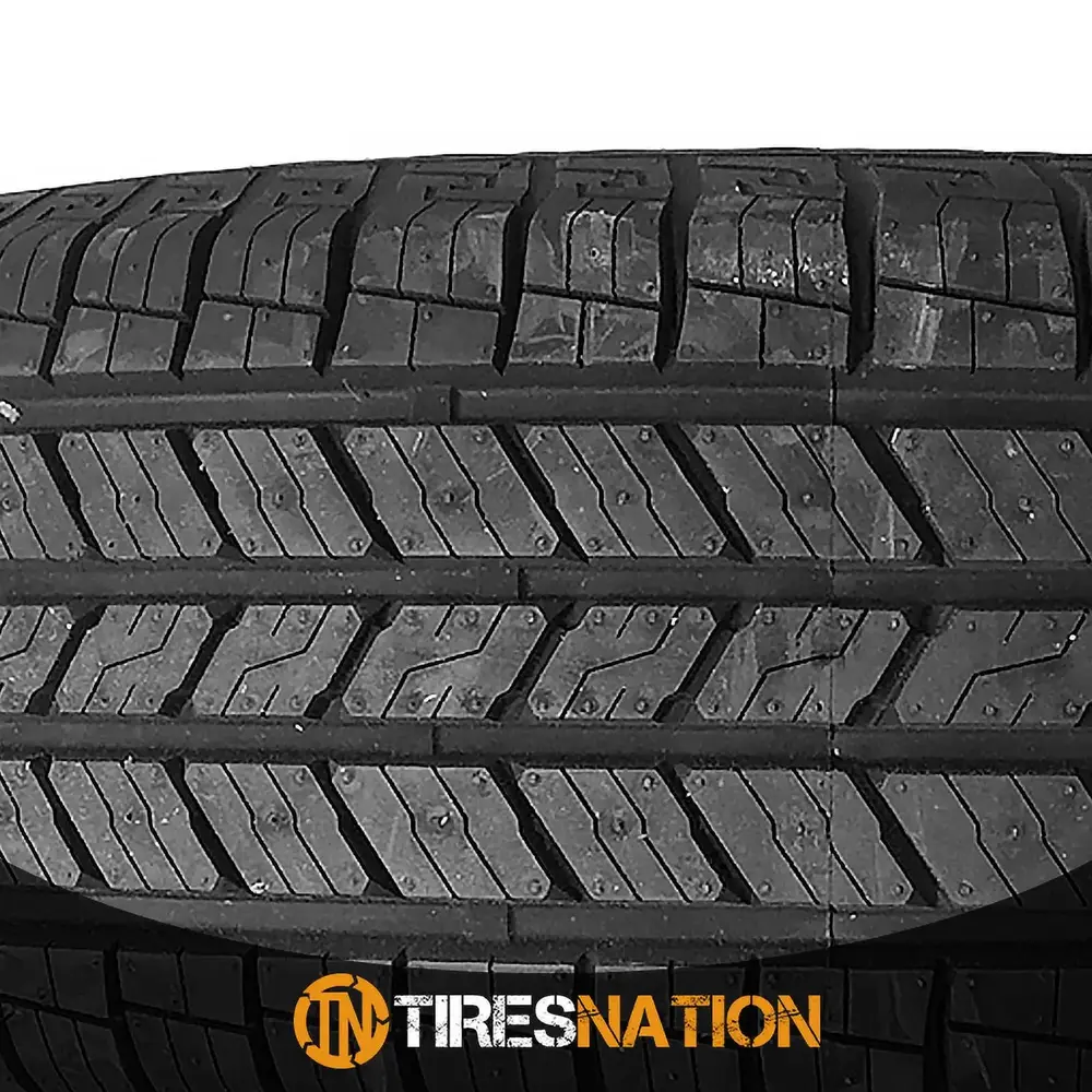 The tire promotes secure all season traction. The all season compound and the detailed tread design greatly boost the dry. wet. and winter weather grip on the road surface. The stronger compound elements optimize the rubber flexibility in versatile weather situations. upgrading the summer and winter weather traction. The tread design utilizes the siping pattern in order to enhance the grip on the road surface with extra biting edges. The circumferential grooves prevent hydroplaning in wet conditions. promoting a safer wet weather performance.